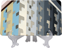Bildgruppe Frühstücksbrettchen" 2004, s/w-Kopie, Beize, Lack auf Frühstücksbrettchen, ca 21,8 x 12 cm