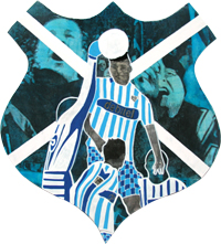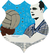 Wappen, ohne Titel, 2006 - s/w-Kopie, Beize, Lack, Lackstifte auf Holz, 37, 5 x 34 cm