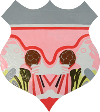 Wappen, ohne Titel, 2006 - s/w-Kopie, Beize, Lack, Lackstifte auf Holz, 37, 5 x 34 cm